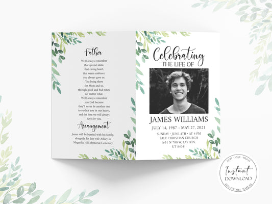 11x17 Celebration of life Watercolor Greenery Funeral Program Template G2