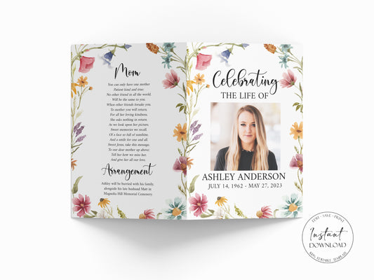 11x17 Celebration of life Red Greenery Wildflower Meadow Funeral Program Template W2
