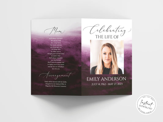 11x17 Celebration of Life Pink Fuchsia Watercolor Funeral Program Template P6