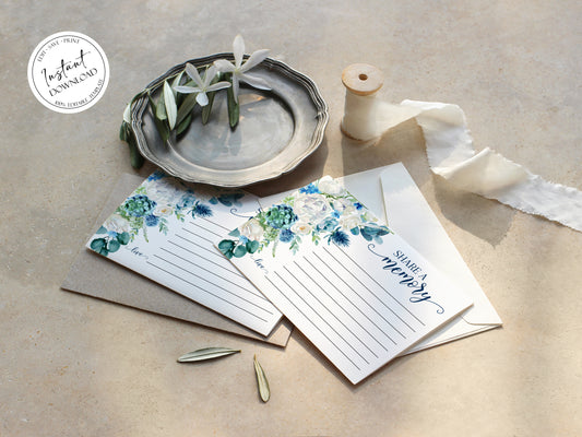Blue White Floral Share a Memory Funeral Sign Share a Memory Card Template B1