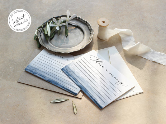 Blue Watercolor Share a Memory Funeral Sign Share a Memory Card Template B4