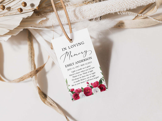 In Loving Memory White Pink Roses Funeral Favor Tag Template P2