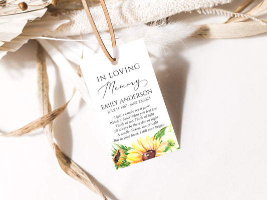 In Loving Memory Sunflower Funeral Favor Tag Template Y1