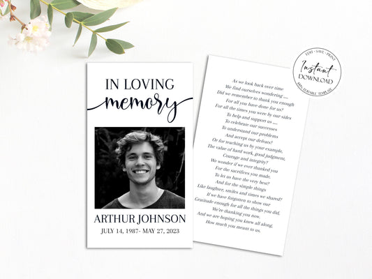 In Loving Memory Simple Elegant Funeral Prayer Card Template S2