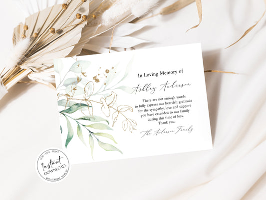 In Loving Memory Watercolor Greenery Gold Funeral Thank You Card Template G1