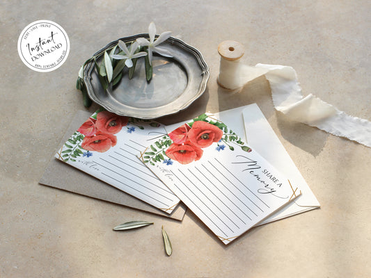 Red Poppies Greenery Share a Memory Funeral Sign Share a Memory Card Template RP1