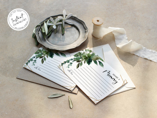 Watercolor Greenery Gold Share a Memory Funeral Sign Share a Memory Card Template G1