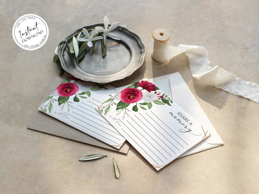 White Pink Roses Share a Memory Funeral Sign and Share a Memory Card Template P2