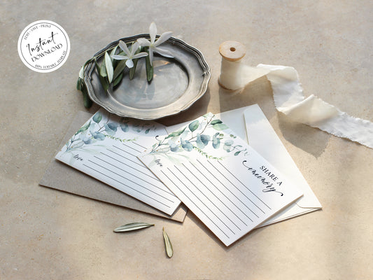 Watercolor Greenery Share a Memory Funeral Sign Share a Memory Card Template G2