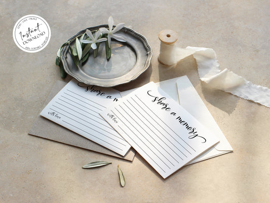 Simple Elegant Share a Memory Funeral Sign and Share a Memory Card Template S3