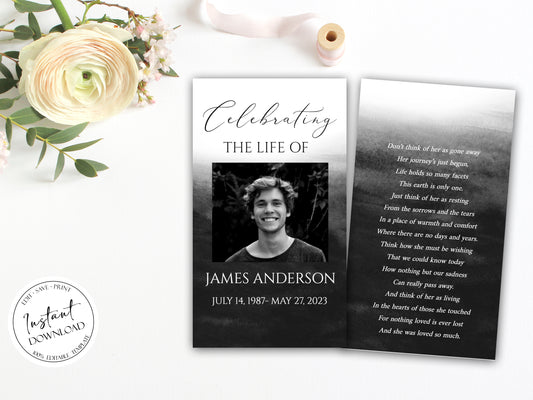 Celebration Of Life Black Watercolor Funeral Prayer Card Template B6