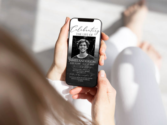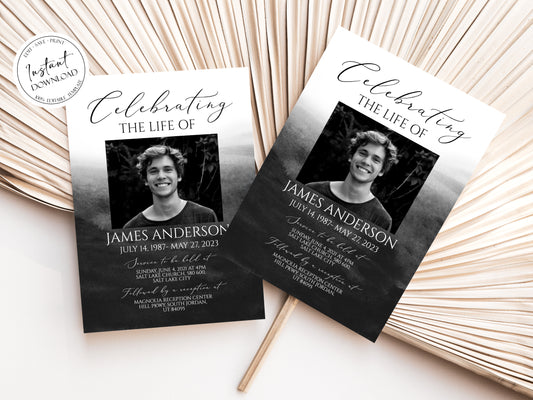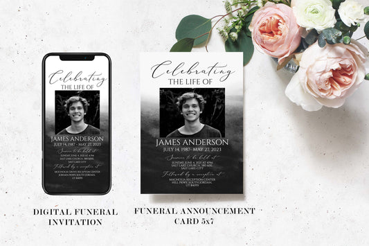 Celebration of life Black Watercolor Digital Funeral Invitation Template B6