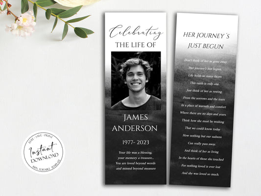 Celebration of Life Black Watercolor Funeral Bookmark Template B6