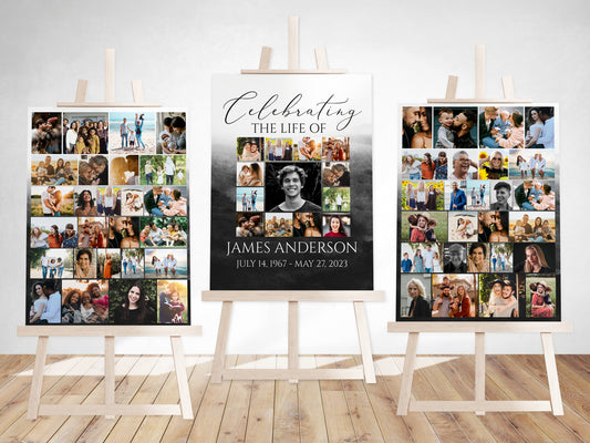 Celebration Of Life Back Watercolor Photo Collage Funeral Welcome Sign Set Templates B6