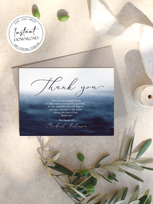 Celebration of life Blue Watercolor Ocean Funeral Thank You Card Template B5