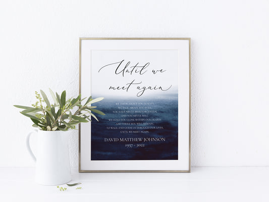 Blue Ocean Watercolor Until We Meet Again Funeral Wedding Sign Template B5