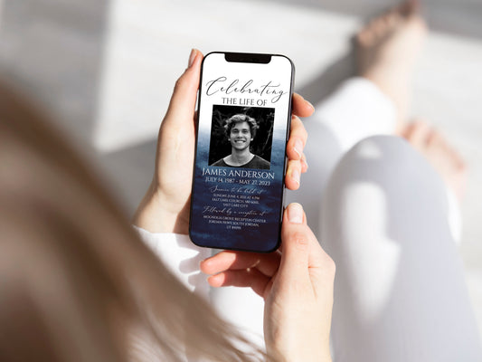 Celebration of life Blue Watercolor Ocean Digital Funeral Invitation Template B5