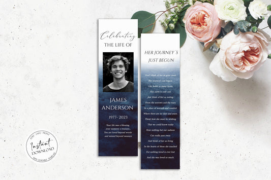 Celebration of Life Blue Watercolor Ocean Funeral Bookmark Template B5