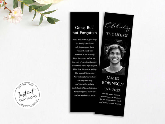 Celebration of Life Minimalist Elegant Black Funeral Bookmark Template B7