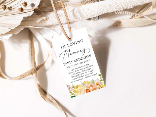 In Loving Memory Elegant Yellow Pink Floral Funeral Favor Tag Template E1