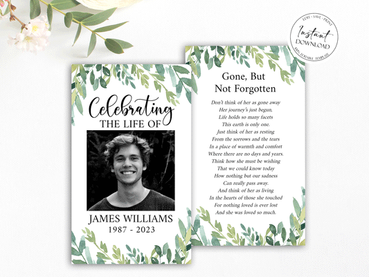 Celebration Of Life Watercolor Greenery Funeral Prayer Card Template G2