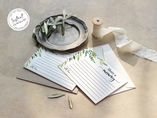 Watercolor Greenery Share a Memory Funeral Sign Share a Memory Card Template G2
