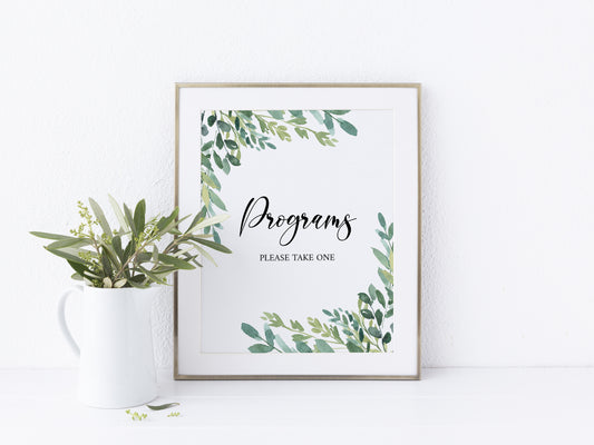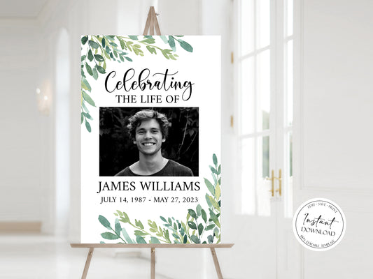 Celebration of life Watercolor Greenery Funeral Program Sign Template G2