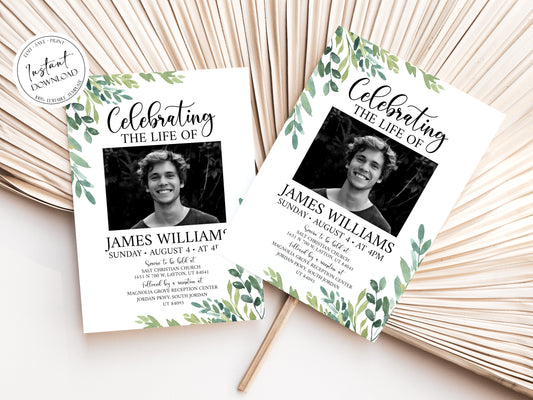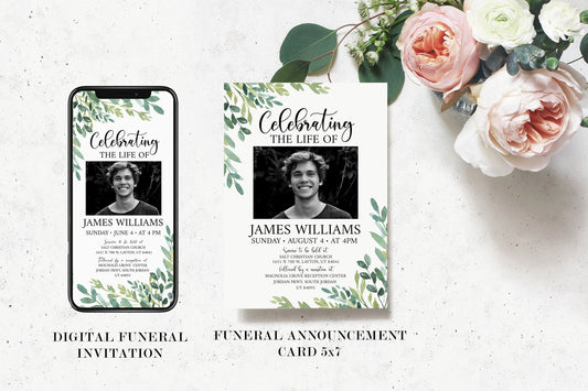 Celebration of life Watercolor Greenery Funeral Invitation Template G2