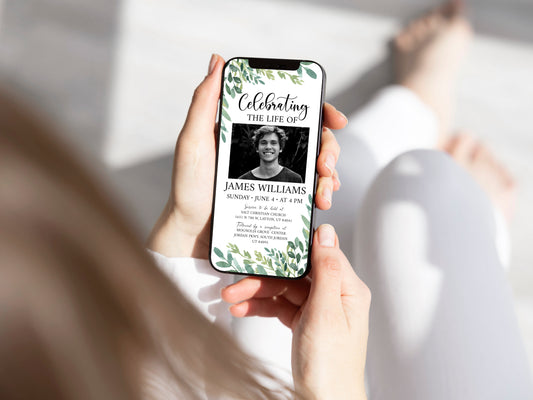 Celebration of life Watercolor Greenery Digital Funeral Invitation Template G2