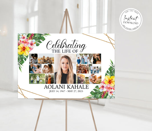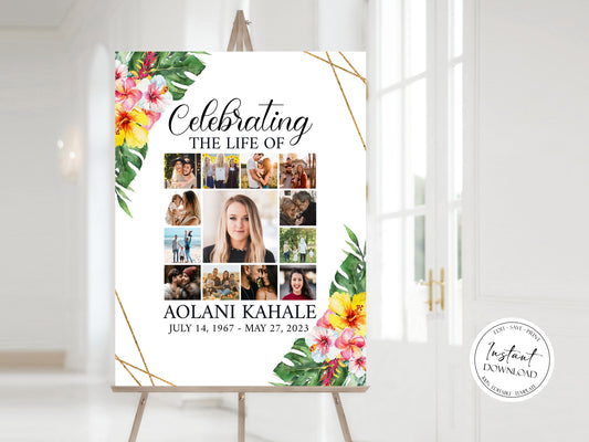 Celebration Of Life Tropical Hawaiian Plumeria Photo Collage Funeral Welcome Sign Template H1