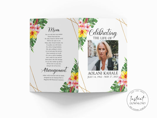 Celebration of Life Tropical Hawaiian Funeral Program Template H1
