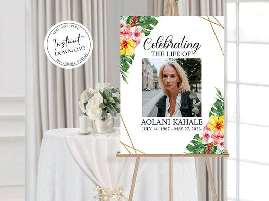 Celebration Of Life Tropical Hawaiian Plumeria Funeral Welcome Sign Template H1