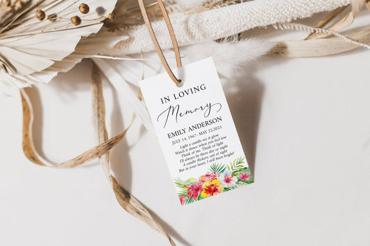 In Loving Memory Tropical Hawaiian Funeral Favor Tag Template H1