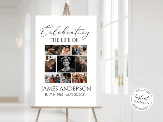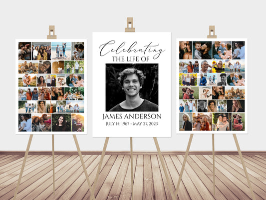 Celebration Of Life Simple Elegant Photo Collage Funeral Welcome Sign Set S1