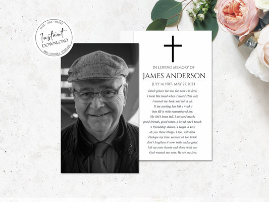 Simple Elegant Cross Funeral Prayer Card Template S1