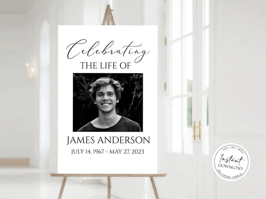 Celebration Of Life Simple Elegant Funeral Welcome Sign Template S1