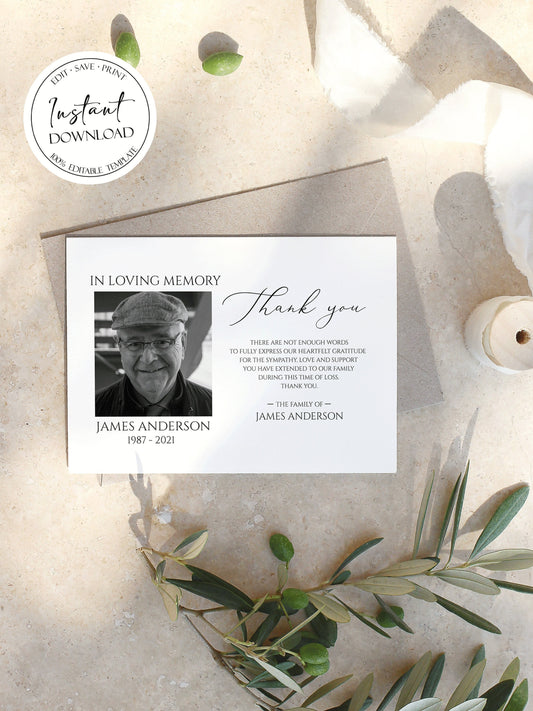 Celebration of life Simple Elegant Photo Funeral Thank you Card Template S1