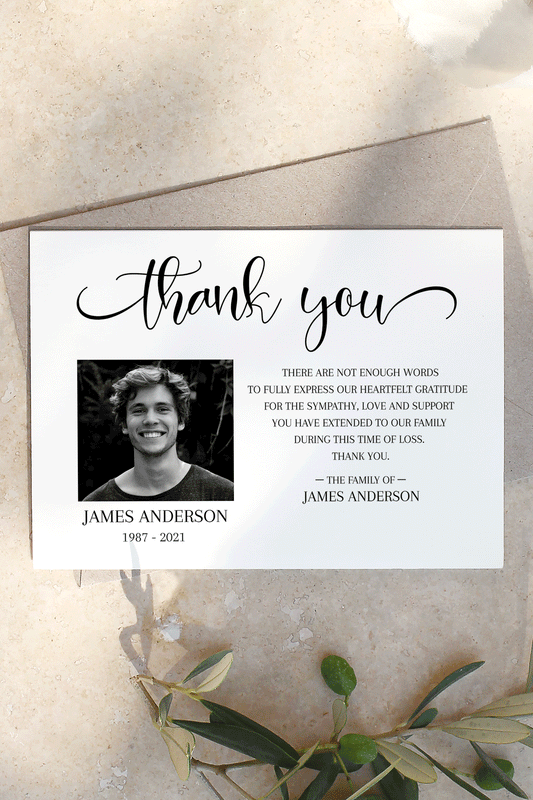 Celebration of life Simple Elegant Photo Funeral Thank you Card Template S2