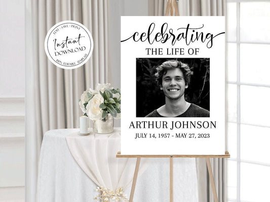 Celebration Of Life Simple Elegant Funeral Welcome Sign Template S2