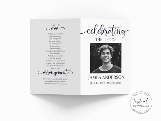 Celebration of Life Simple Elegant Funeral Program Template S2