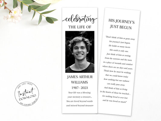 Celebration of Life Simple Elegant Funeral Bookmark Template S2