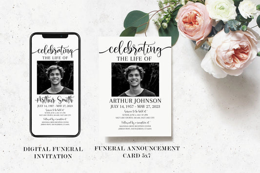 Celebration of life Simple Elegant Digital Funeral Invitation Template S2