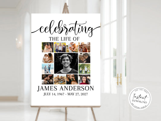 Celebration Of Life Simple Elegant Photo Collage Funeral Welcome Sign S2