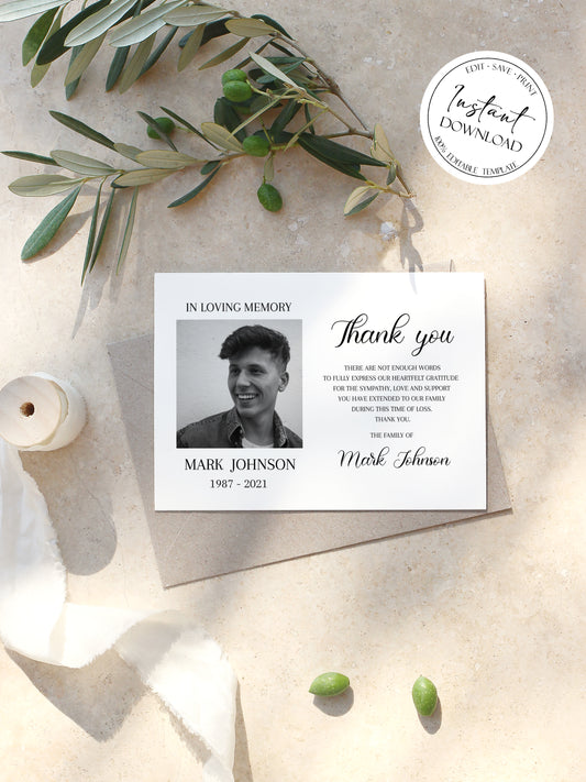 Celebration of life Simple Elegant Photo Funeral Thank you Card Template S3