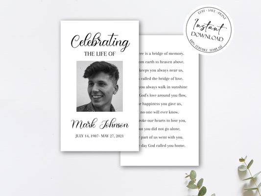 Celebration of life Simple Elegant Funeral Prayer Card Template S3