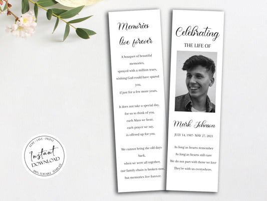 Celebration of Life Simple Elegant Funeral Bookmark Template S3