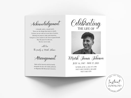Celebration of Life Simple Elegant Funeral Program Template S3