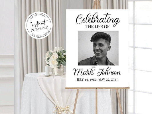Celebration Of Life Simple Elegant Funeral Welcome Sign Template S3