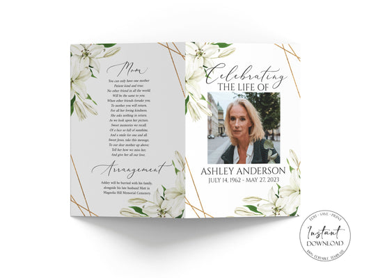 Celebration of Life White Lilies Greenery Funeral Program Template WL1