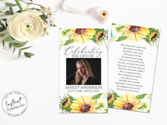 Celebration Of Life Sunflower Funeral Prayer Card Template Y1